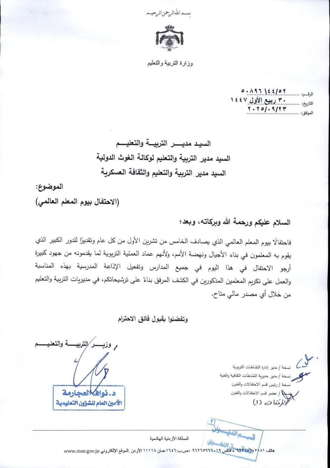 ووجه أمين عام الوزارة الدكتور نواف العجارمة كتابا إلى مدير إدارة التعليم الخاص ومدراء التربية والتعليم لاتخاذ كافة الاجراءات الكفيلة بهذه الانتخابات واستكمال ادخال البيانات الالكترونية على منصة الانتخابات البرلمانية الطلابية.