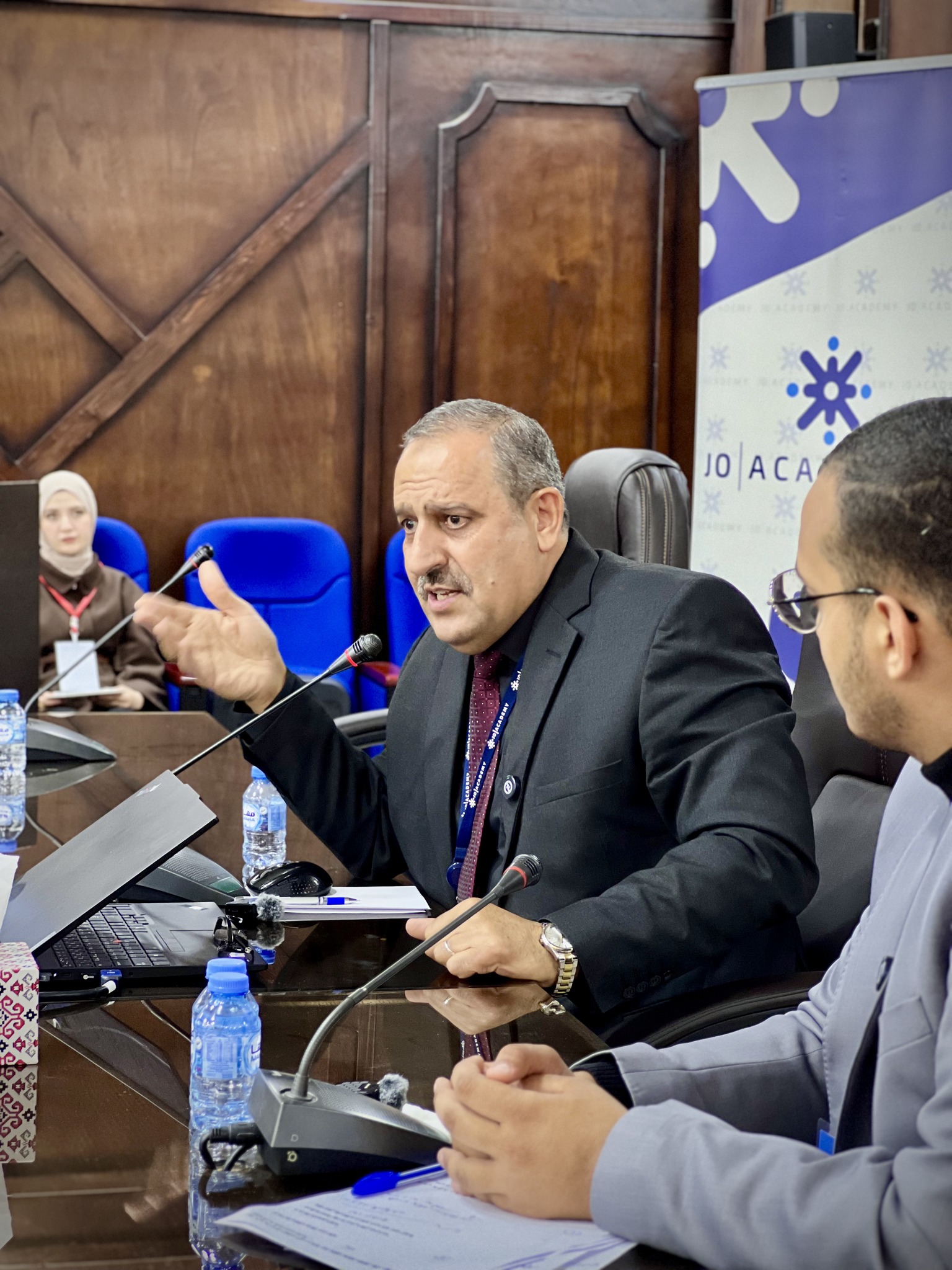 والقى الدكتور علي حماد، مدير المحتوى الإلكتروني في الشركة الأردنية لحلول التعليم والمحتوى "جو أكاديمي"، مندوبا عن الشركة محاضرة تناول فيها العديد من المواضيع الهامة حول نظام الثانوية العامة الجديد ونظام التعليم المهني
