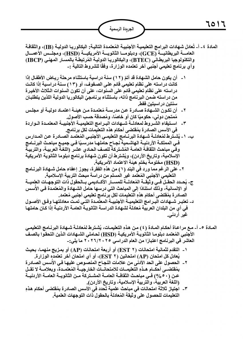 جو اكاديمي - صدرت في عدد الجريدة الرسمية اليوم الاثنين، تعليمات جديدة لمعادلة الشهادات غير الأردنية من مستوى شهادة الدراسة الثانوية العامة.