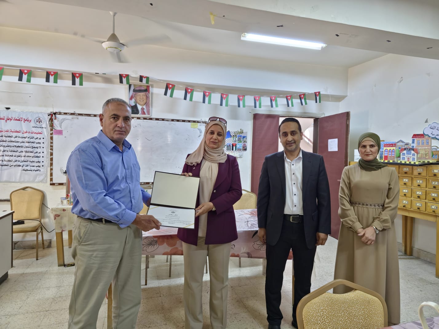 جاء هذا التكريم خلال احتفالية بهيجة أقيمت في مدرسة إسكان المالية والزراعة الثانوية للبنات، بحضور مدير الشؤون التعليمية د. عبدالله وريكات ورئيس قسم التعليم المهني التقني م. رئيفة الجيطان وعدد من مديري الأقسام والمشرفين التربويين والمعلمين.