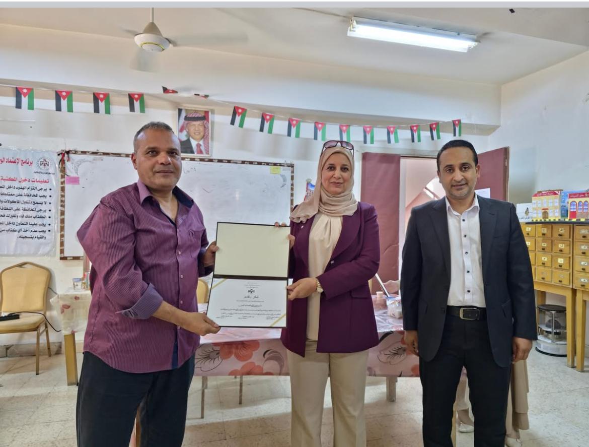 جو أكاديمي - في خطوة تؤكد التزامها بدعم الابتكار والتميز في الميدان التربوي، كرمت الدكتورة شروق العيطان، مديرة التربية والتعليم للواء القويسمة، المهندس منذر عبدالله السمارنة والمعلم منتصر رشيد التميمي، وذلك لفوزهما المشرف في مسابقة تصنيع الأجهزة التدريبية والتعليمية الخاصة ببرنامج التعليم المهني التقني (BTEC) لعام 2024.